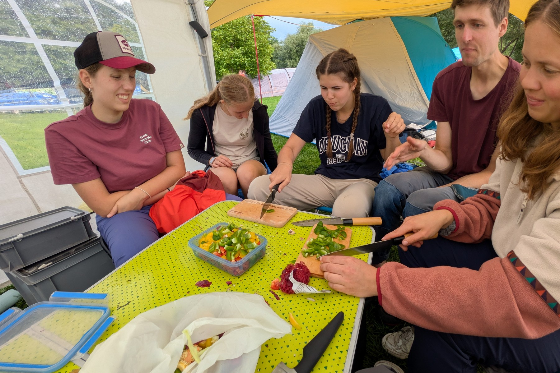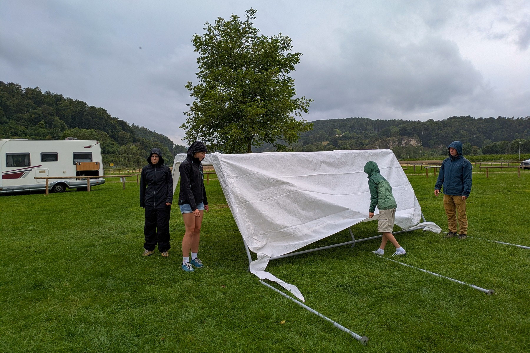 Alles begann am Freitag den 01.08 in Ulm mit einer großen Tetris Aktion beim Beladen des Gepäcks. Über holprige Wege ging es dann Richtung Campingplatz ins Altmühltal.Nach dem verregneten Aufbau wurde das Wetter vorläufig besser und wir gingen eine Runde in der Altmühl baden. Anschließend legten wir uns in die Sonne, doch bald schon fing es wieder an zu regnen. Von Minute zu Minute spitzte sich die Lage zu, bis unser Zelt fast vom Platz gefegt wurde. Glücklicherweise konnten wir unser Zelt retten und warten bis das Unwetter vorbeizog. Nach dem Abendessen ließen wir den Abend mit Werwolf (auf unbequemen Stühlen) am Lagerfeuer ausklingen.