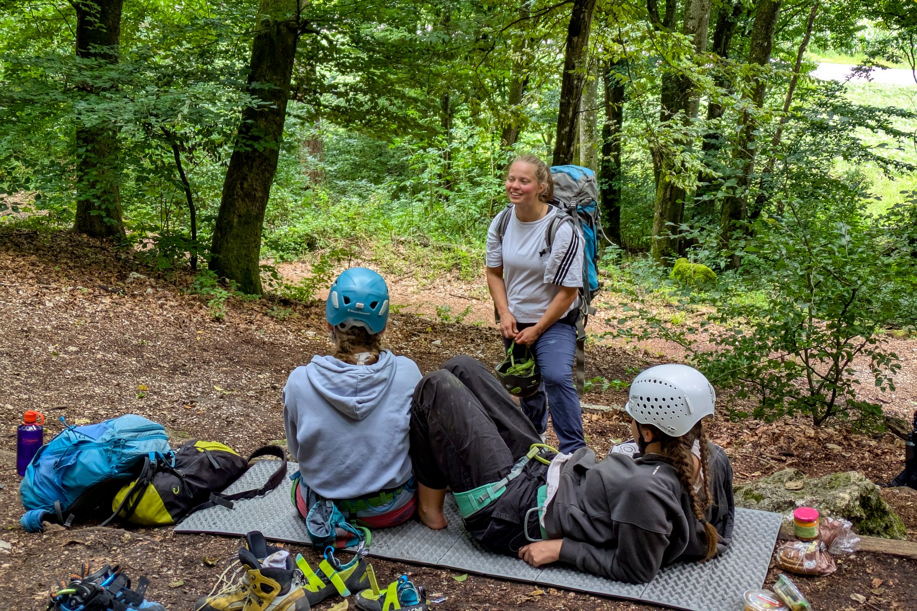 Am vorletzten Tag ließ das Wetter nach dem Frühstücken glücklicherweise ein paar Klettereien zu. Vor dem Abendessen hieß es mal wieder eine Runde vorlesen und schlafen. Nachdem uns zwei verließen gab es als Trost Nudeln mit Pesto. Anschließend machten wir nochmal ein Feuer um nicht die ganze Ausfahrt zu verschlafen.Der traurige Abschied